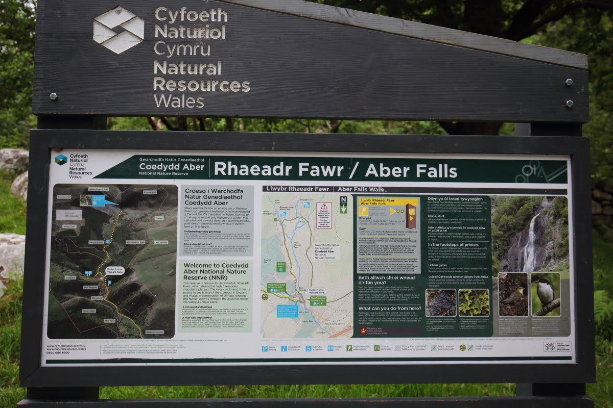 A small road off the highway and we parked at Aber falls carpark for £5. We did a little track to the falls. The path was moderate, safe and mostly open land at the side of the mountain.